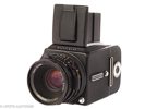 Victor Hasselblad AB, Sweden, 1984. SLR 6x6cm, black, with Planar CF 2.8/80mm T* No.6856020 (CB, minor dust in optics), A12 back No.RC 3285253 (BC) and cap.