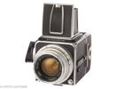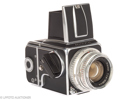 Victor Hasselblad AB, Sweden, 1967. SLR 6x6cm, chrome, with Planar C 2.8/80mm No.2572487 (CB), and C12 back No.TS 53895 (B, light seal defective).