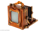 John Nesbitt, Wales, 1990's. Folding view camera 4x5'' in wood and brass, with Rodenstock Sironar-N 5.6/150mm No.10654532 (B) and front cover.