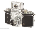 Ihagee, Germany, 1930's. SLR 24x36mm, chrome, with Zeiss Jena Tessar 2.8/5cm No.2043891 (B, haze and dust inside optics). Rare first version with round magnifier. One synch post has been added to the front.
