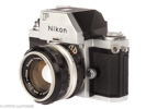 Nikon, Japan, 1972. SLR 24x36mm, chrome, with Photomic FTn No.839786 and Nikkor-S Auto 1.4/50mm No.705410 (B). Late "Apollo"-version with F2-type wind-on lever and self timer.