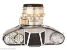 Ihagee, Germany, 1950's. SLR 24x36mm, chrome with Jena (Carl Zeiss) T (Tessar) 2.8/50mm "T" No.5617336 (B) and prism finder.