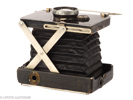 Plaubel & Co., Germany, 1930's. Collapsible 6x9cm camera, black, with Plaubel Anticomar 2.9/10cm No.54284, in Compur 1-200. Focusing screen back is missing.